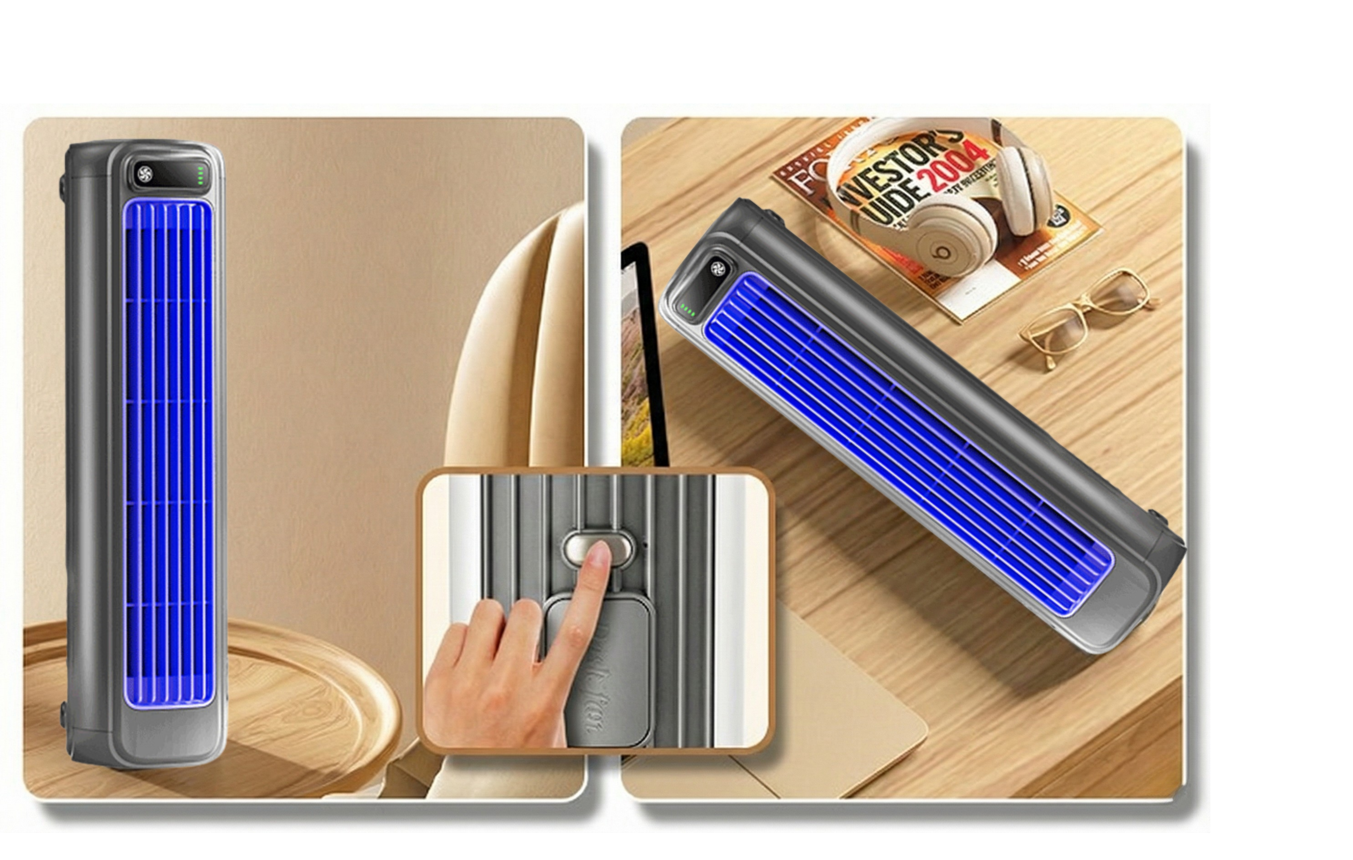 Compacto, portátil e silencioso, você pode levá-lo para QUALQUER AMBIENTE para aproveitar o ar fresco e limpo que ele proporciona.